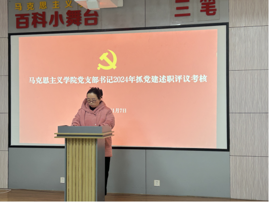 会上,师生联合党总支书记赵国峰、思政课教师党支部书记宋丽萍、专业课教师党支部书记张江婷对照高校基层党组织工作条例关于高校教职工党支部职责、员工党支部职责的规定,从政治理论学习、党建工作质量、创新党建工作方法等方面汇报了2024年抓支部党建的主要工作、成效和存在的不足,剖析了问题的成因。