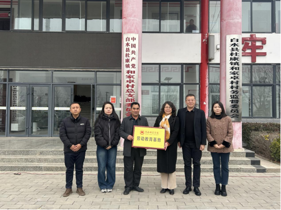 12月12日,beat365官网登录中文与白水县杜康镇政府、白水县和家卓村分别举行劳动教育基地授牌仪式。临渭区白水县杜康镇党委副书记高艺媛、和家卓村党总支书记赵新发,beat365官网登录中文经理张萍,副书记肖飞,党务秘书蔺怡轩共同参加了本次授牌仪式。