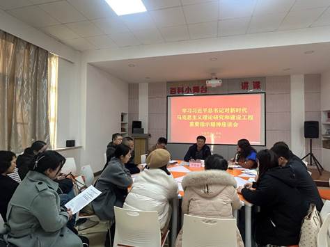 会议介绍了中宣部马克思主义理论研究和建设工程工作会议召开情况,与会人员全文学习了新华社新闻通稿《习近平对新时代马克思主义理论研究和建设工程作出重要指示》并结合各自科研、教学、教材编写等实际逐一发言,交流学习体会和进一步在工作中落实习近平总书记重要指示的建议、计划。