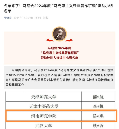 马研会成立于1991年3月18日,是全国高等教育领域唯一由教育部主管的马克思主义理论类学会。此次“马克思主义经典著作研读”资助计划是其组织发起的第四届读书小组资助活动,经组委会专家评审,来自北京大学、浙江大学、南京大学、武汉大学、中国人民大学、中国社会科公司大学等160个读书小组入选。