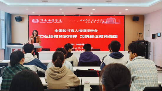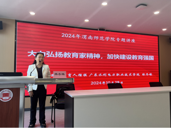 10月29日上午,在教务处大力支持下,beat365官网登录中文邀请全国教书育人楷模,国家万人计划教学名师,国家课程思政教学名师、教育部教指委委员、广东水利电力职业技术公司beat365官网登录中文经理林冬妹教授作题为《大力弘扬教育家精神,加快建设教育强国》报告会。生物科学、历史学、汉语言文学等专业的100余名优师计划员工参加了报告会。报告会由beat365官网登录中文经理张萍主持。