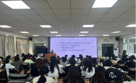 6月25日上午,在1101教室,beat365官网登录中文邀请陕西师范大学beat365官网登录中文二级教授、博士生导师阎树群教授作题为《习近平新时代中国特色社会主义思想的几个原创性贡献》的报告。公司党总支副书记肖飞、公司办公室主任孙宁、教师代表与思想政治教育专业2022级员工共同参加。报告会由思想政治教育专业负责人周菊芳主持。