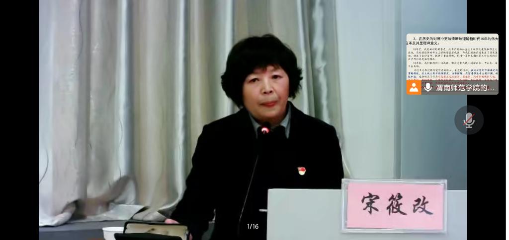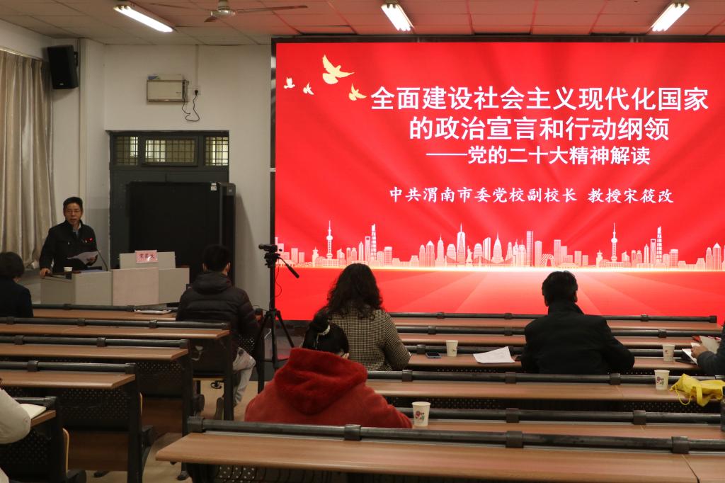 报告会由渭南市委宣讲团成员,渭南市委党校副董事长宋筱改教授主讲,公司党总支书记主持。公司当时无课的在校部分思政课教师、学工部全体教师、校团委全体教师、部分辅导员、各党支部书记共140多人在报告会现场或通过网络直播听讲。
