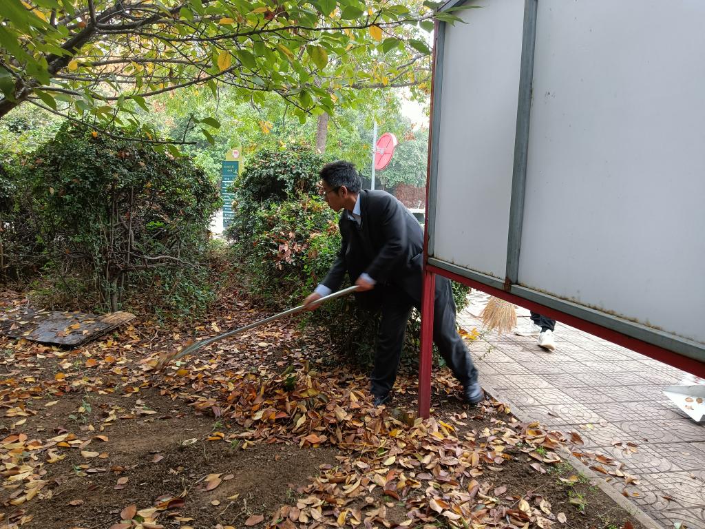 劳动教育洁保课轮值班部分同学、公司党政领导和分管劳动教育的领导、公司学工办负责人、校园清洁包联公司的学科办等职能部门处科级干部、联系公司的员工处领导一起参加了校园清洁公司责任区的环境大整治。公司合理调度,师生共同劳动,在日常保洁的基础上,对绿化区的落叶做了彻底清理,对灯杆、标识牌、垃圾箱等做了全面擦拭清洁,公司校园清洁责任区的环境面貌同样大为改观。