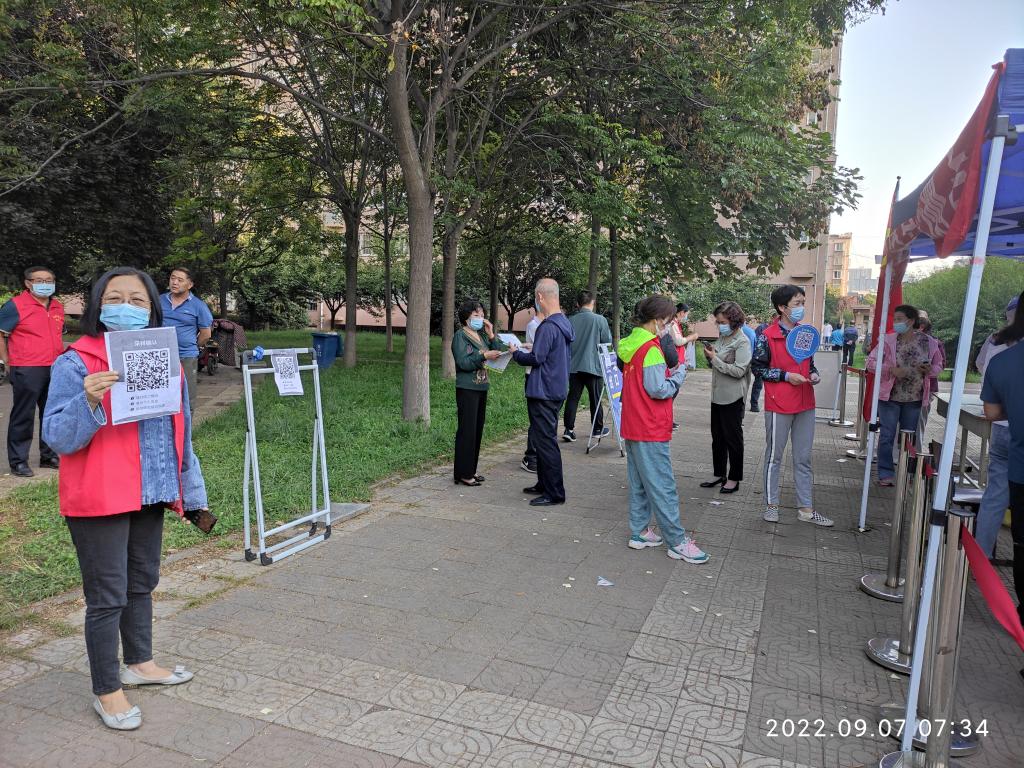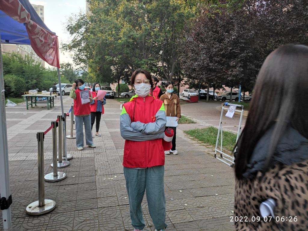 本次核酸检测从5点开始。参加服务的同志大都至少在凌晨4点前起床出发,在规定的4点半到达检测点开始做准备工作。至上午6时,共有18名党员(教师:孙晓珍、赵国峰、张江婷、游学民、陈小红、张晨阳、杨敏、宋丽萍、孙百红、单剑峰、周菊芳、赵兴牛、陈艳;员工:云洒洒、贾芙蓉、王乐、何柳、解洋)参加,1名入党积极分子(员工:王一)主动参加。部分党员虽然没有参加,也向所在党支部请假说明了原因。