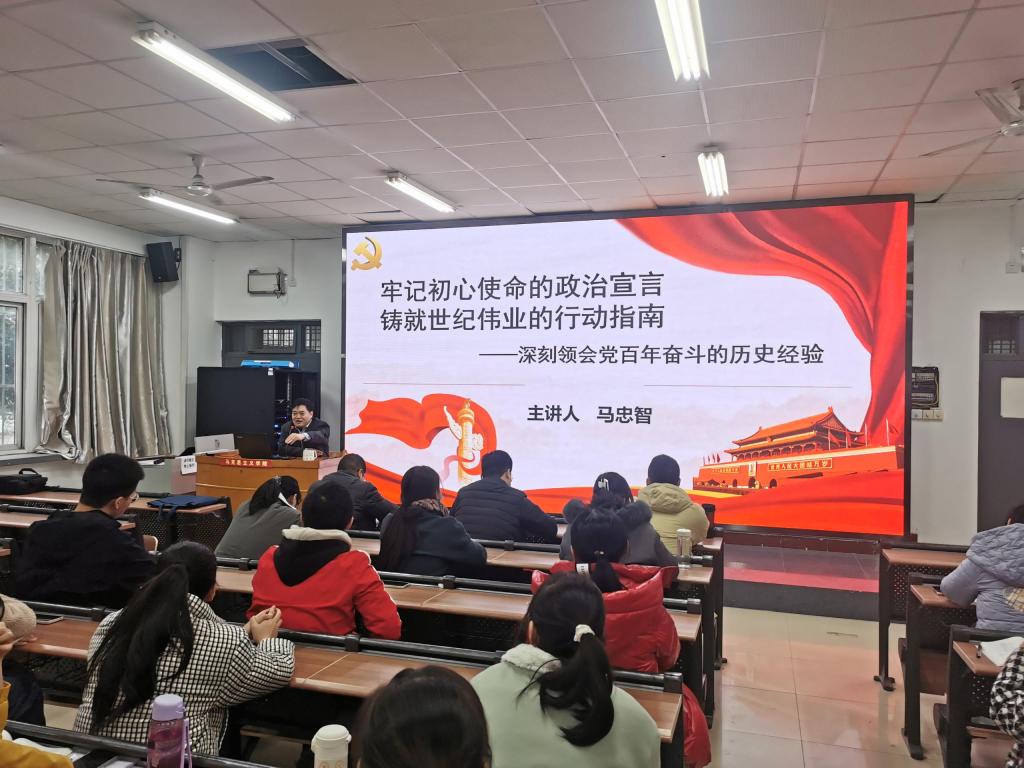 12月7日下午,应公司邀请,十九届六中全会精神理论宣讲团在公司作了宣讲报告。报告会由公司党总支临时负责人主持,由宣讲团负责在公司宣讲的马忠智教授作了题为《牢记初心使命的政治宣言,铸就世纪伟业的行动指南——深刻领会党百年奋斗的历史经验》的报告。公司无课教师、团总支全体成员、非毕业班团支部书记、明理坊成员、员工党员、党员发展对象、员工思想政治宣讲队成员到场听讲。