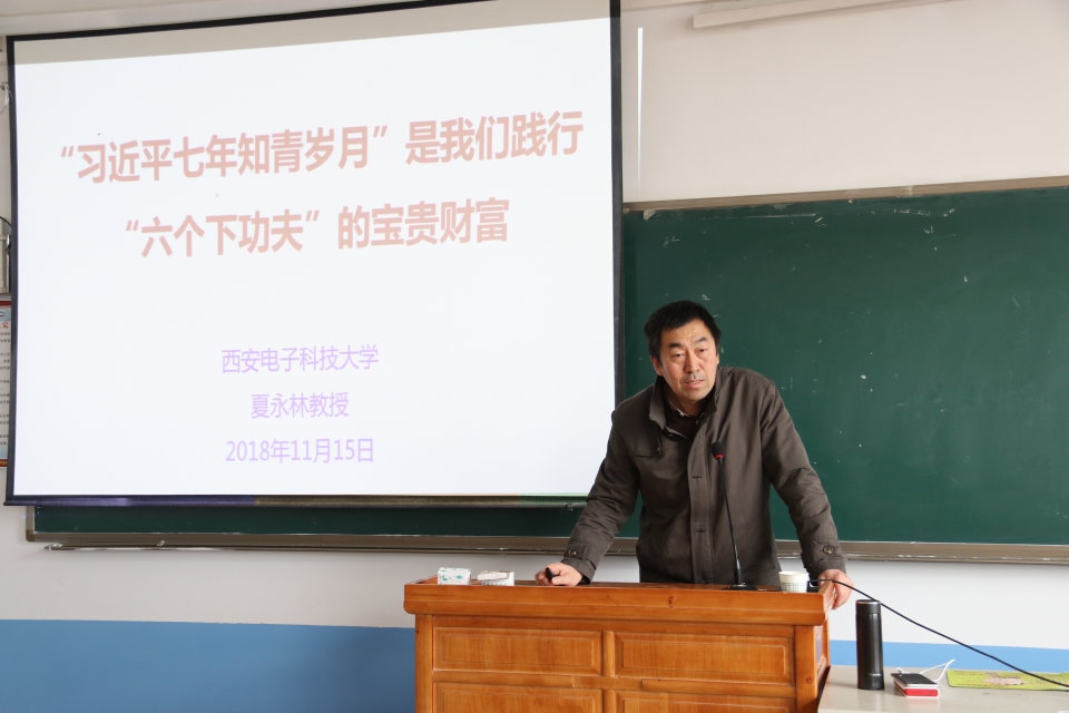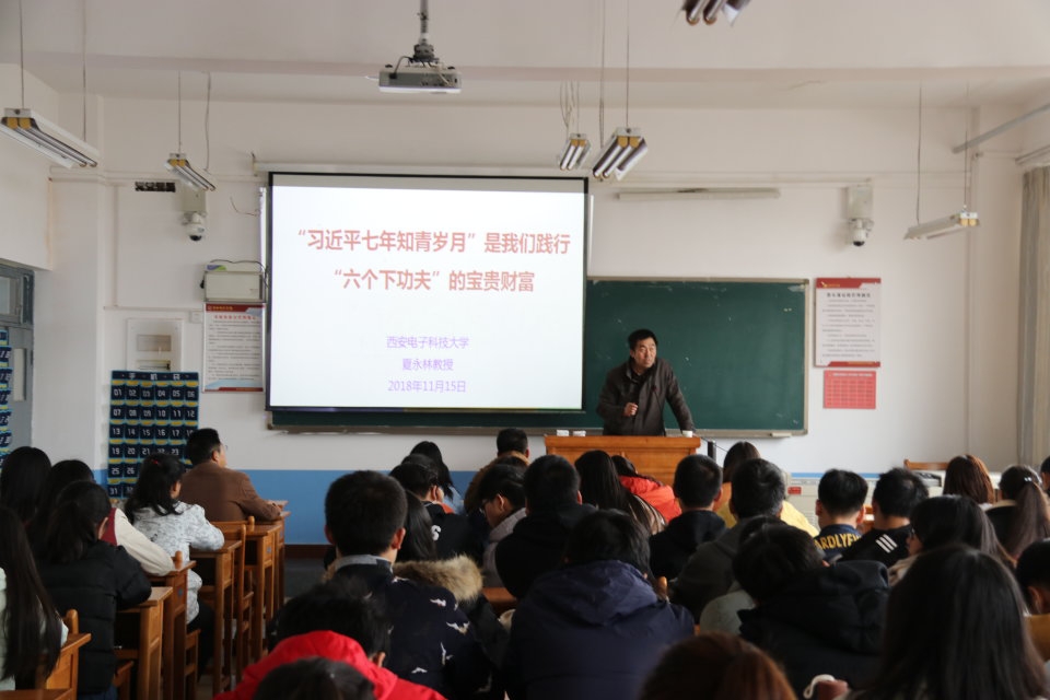 11月15日下午,2017年度全国高校思想政治理论课教师影响力人物、西安电子科技大学夏永林教授为beat365官网登录中文师生做了题为《习近平七年知青岁月是我们践行“六个下功夫”的宝贵财富》的专题讲座。