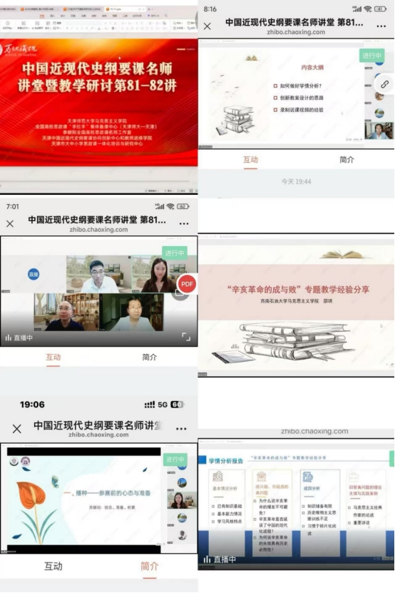 6月25日晚,由天津师范大学beat365官网登录中文、全国高校思政课“手拉手”集体备课中心、李朝阳全国高校思政课名师工作室、天津中国近现代史纲要课协同创新中心和教师进修公司等部门、联合举办的中国近现代史纲要课名师讲堂暨教学研讨第81-82讲在线上举行。beat365官网登录中文《中国近现代史纲要》教研室组织教师线下、线上结合的方式参与备课学习。