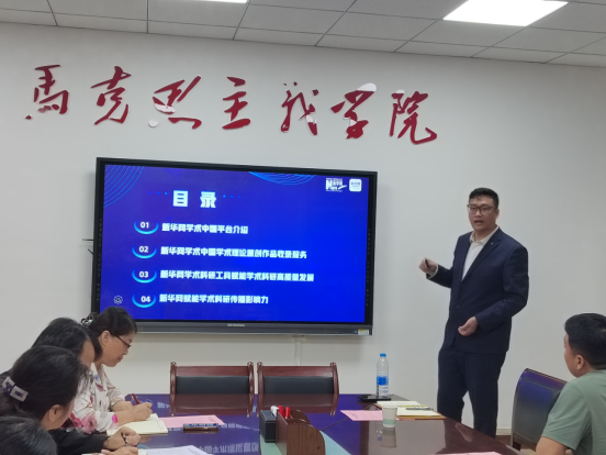 会上,张萍经理首先对新华网“学术中国”平台出版服务中心王云峰主任的到来表示欢迎和感谢,她介绍了目前公司发展、团队建设、科研创新、人才培养等方面取得的成果及未来发展规划等。在主题报告环节,王云峰主任以“新华网‘学术中国’赋能人才教育科技高质量发展”为题,从“新华网学术中国平台基本情况”“学术中国学术理论原创作品收录服务”“学术科研工具赋能学术科研高质量发展”“赋能学术科研传播影响力”等四个方面介绍了平台在推动高校思政教育与科研创新深度融合方面的实践探索与赋能方案,强调要加速推进教育与实践协同创新和高质量发展,切实提高高等院校教职工的公司产品和学术科研能力,努力为推动教育强国建设提供学术动力。