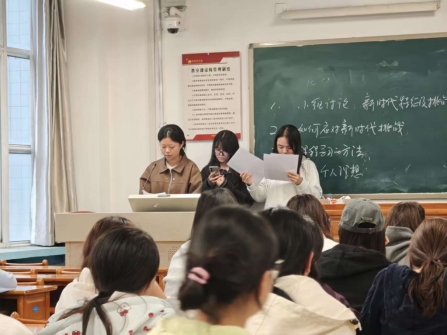 最后,孙老师结合同学们的讨论进行了发言。她欣慰地表示:“今天,我看到了大家思考的光芒和敢于表达的勇气。这比任何标准答案都更为珍贵。课堂因大家的分享而真正‘活’了起来。”她还总结概括了新时代的基本特征、带给青年老员工的机遇与挑战,引导同学们思考置身于时代洪流之下的青年如何勇立潮头,担当青年责任。正如习近平总书记所说:“中国的未来属于青年,中华民族的未来也属于青年。”