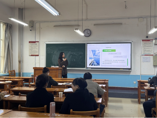 孙蓉蓉、靳达、杨飞洋、陈芳园、孙璞、周韶尉、冯晶、姚烨等八位青年教师同台竞技展现教学实力。整场比赛精彩纷呈,参赛选手们紧密结合课程要求与自身教学特点,多角度挖掘课程元素、精心设计教学内容,用饱满的精神状态、富有感染力的语言,呈现了一个又一个精彩纷呈、意犹未尽的教学课堂精彩片段。督导团卢粉艳教授、各教研室主任担任本次赛事评委,比赛中评委们紧扣2025年度青年教师教学竞赛的评分标准,从教学设计方案、课堂教学、教学反思等三个方面和赛讲细节对选手们进行了逐一指导。
