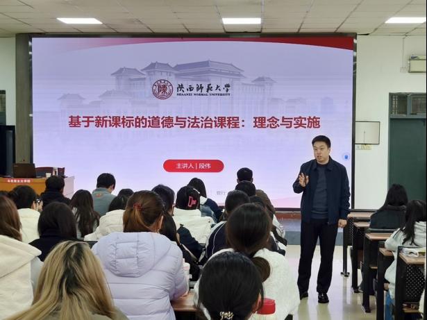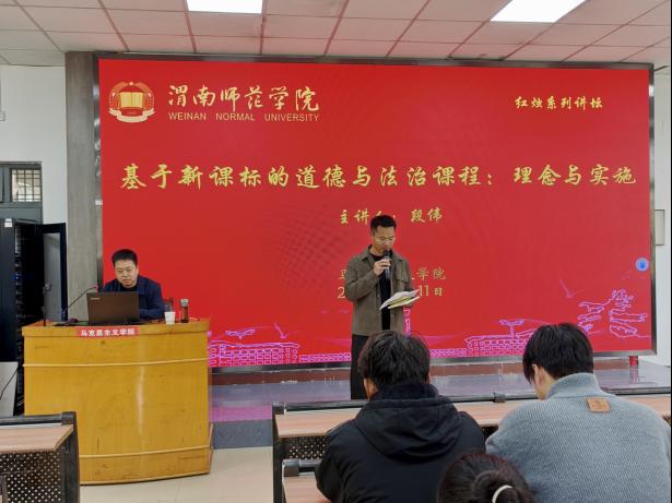 11月11日上午,beat365官网登录中文邀请中国教育学会中小学德育分会常务理事、教育部大中小学思政课一体化研究与建设中心研究员、陕西师范大学思政学科培训首席专家、陕西师范大学beat365官网登录中文基础公司产品研究中心主任段伟副教授作题为《基于新课标的道德与法治课程:理念与实施》的讲座。讲座由覃景冠老师主持。