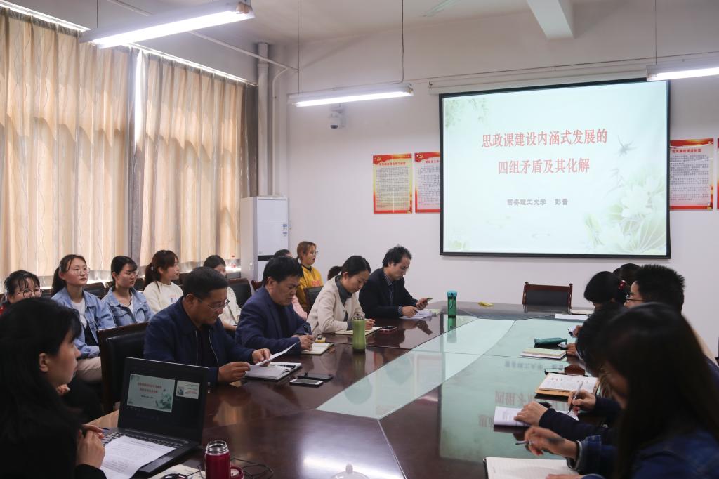 彭蕾副教授在报告中指出了思政课建设内涵式发展的四组矛盾,即课程供给与员工需求的矛盾、理论教学与实践教学失衡的矛盾、专业教育与思想教育分离的矛盾、课程定位与课程保障错位的矛盾。化解上述四组矛盾是推动思政课建设内涵式发展的根本出路。彭蕾副教授分别介绍了化解矛盾的各种方法与成功经验。主要是凝练教学内容,运用讲座、辩论、讨论、演讲等方式进行专题性教学;大力开展各种主题教育活动,将单一的教育模式转变为体验式教育模式;加强宣传思想文化阵地建设,发挥校园媒体联盟作用,构建全员、全课程的“大思政”教育体系,在思政教育和专业课程之间找到融合点;加大改革创新力度,将思政课列入高校重点课程建设,领导带头走进课堂,带头推动思政课建设。